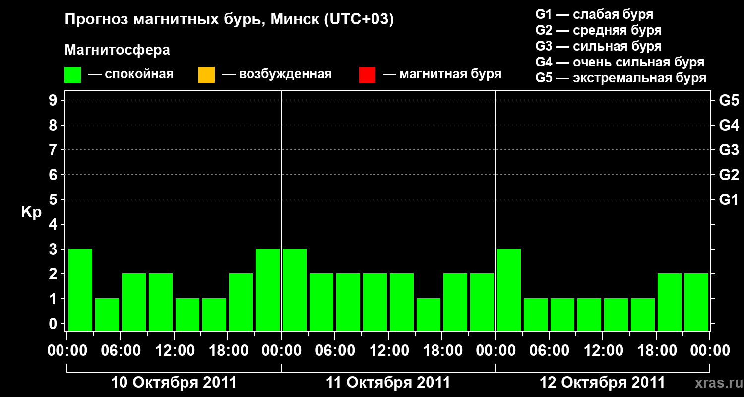 Прогноз магнитных бурь в Минске — 10 октября 2011 года