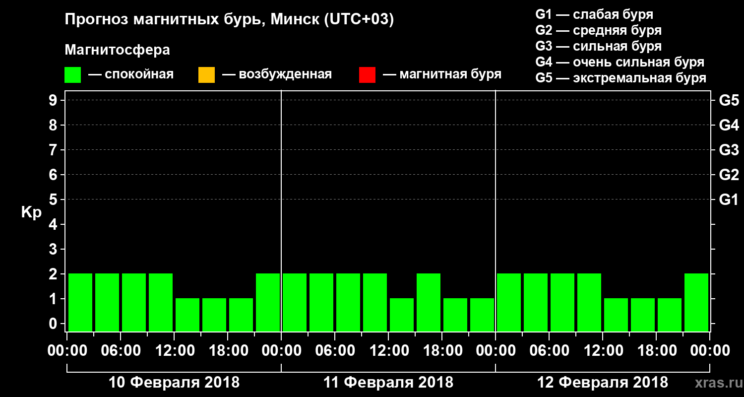 Прогноз магнитных бурь в Минске — 10 февраля 2018 года