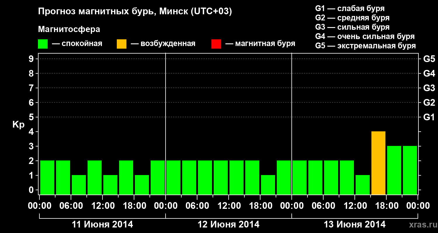 Прогноз магнитных бурь в Минске — 11 июня 2014 года