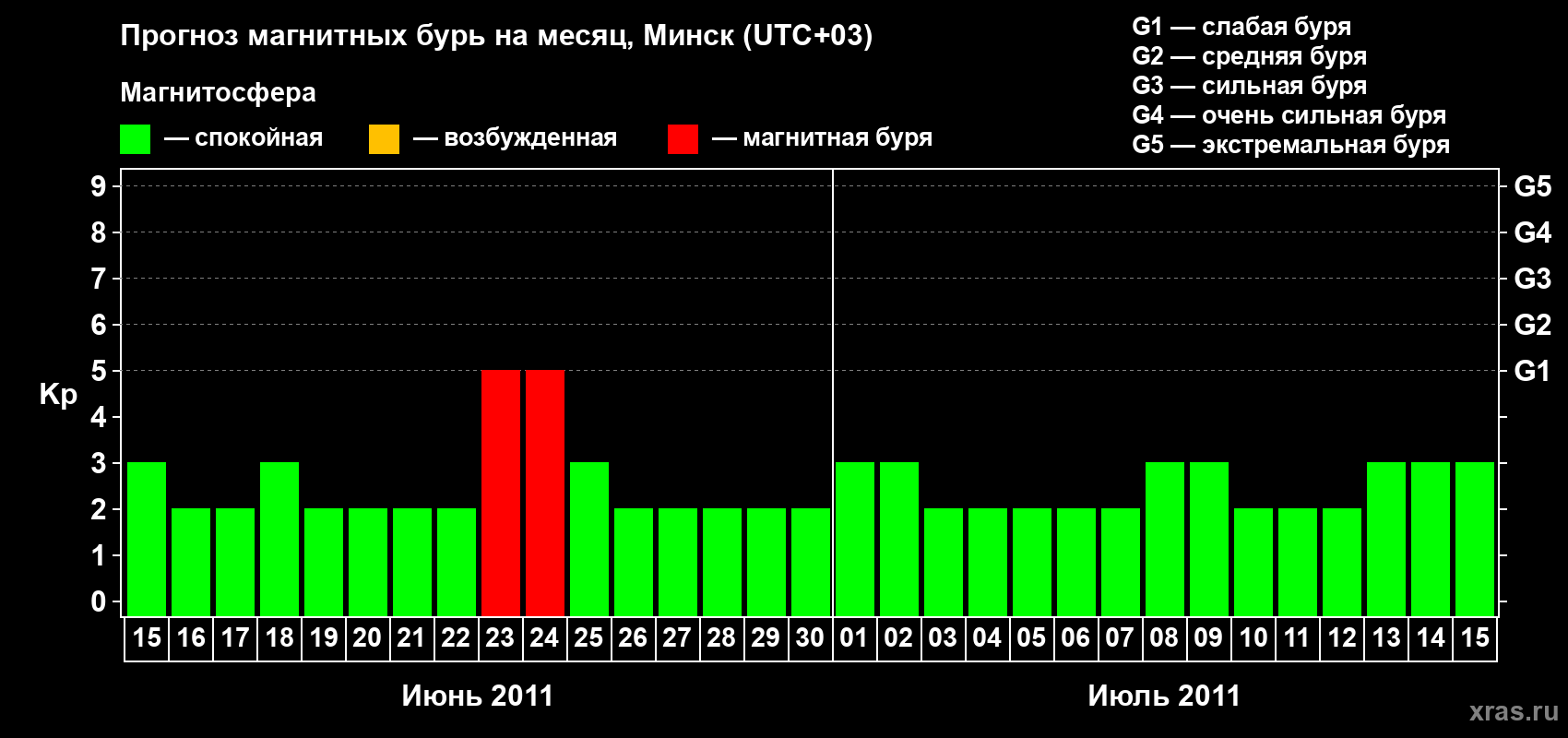 Прогноз магнитных бурь в Минске — 15 июня 2011 года