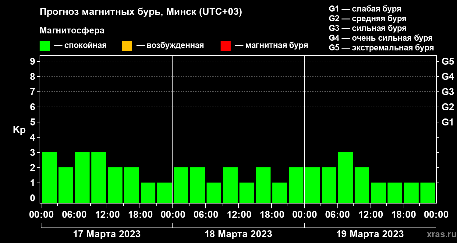 Прогноз магнитных бурь в Минске — 17 марта 2023 года