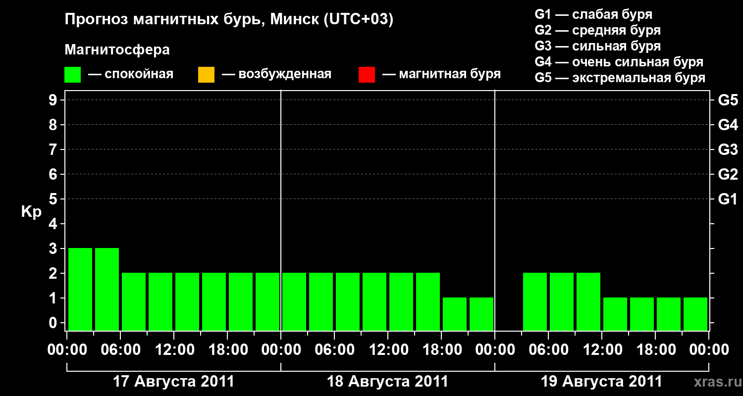 Прогноз магнитных бурь в Минске — 17 августа 2011 года