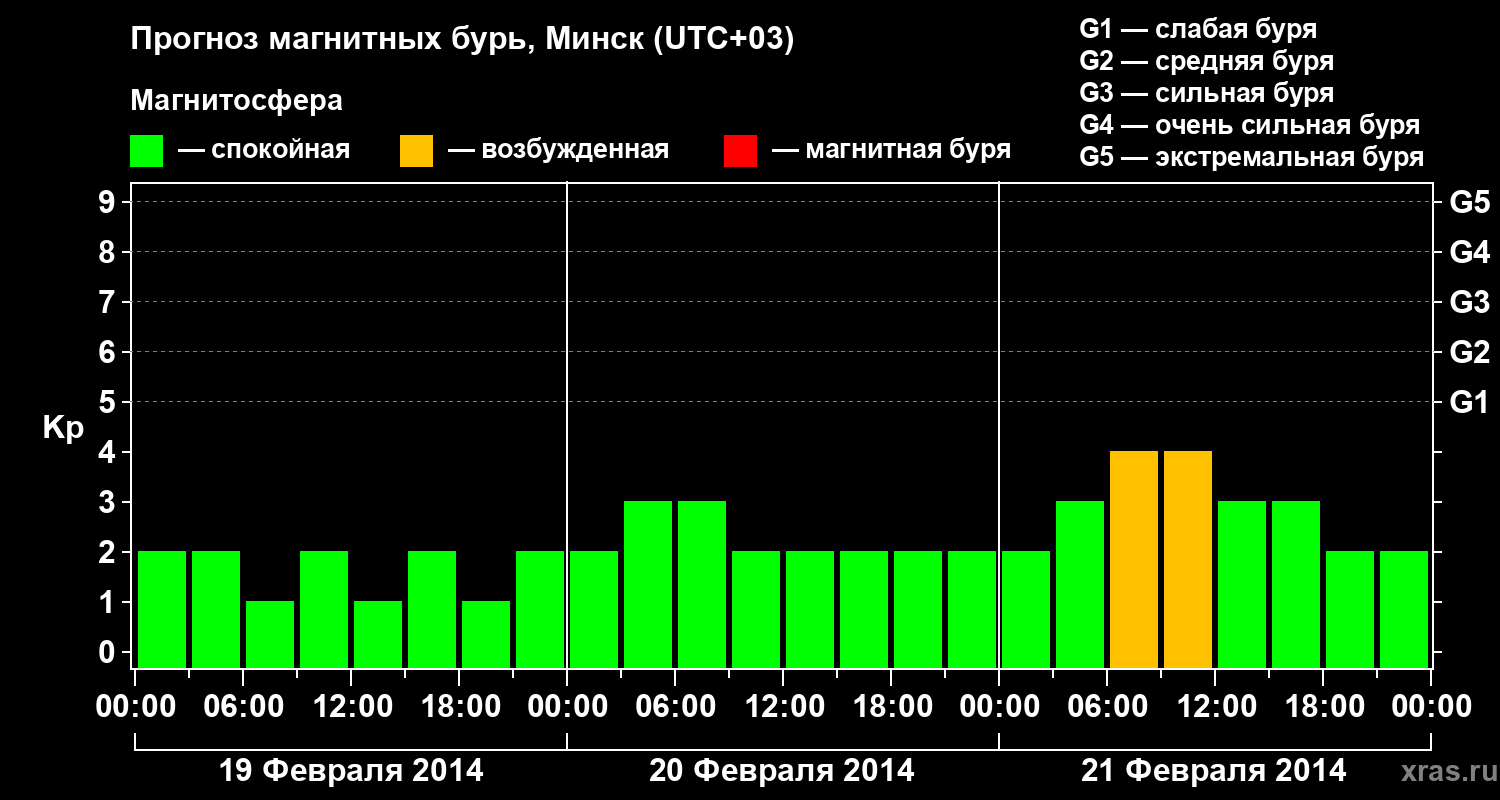 Прогноз магнитных бурь в Минске — 19 февраля 2014 года