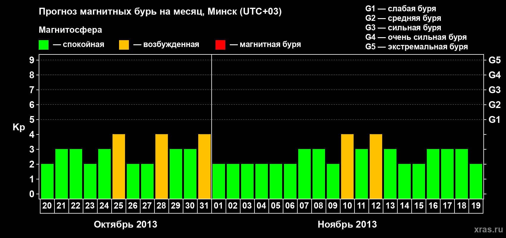 Прогноз магнитных бурь в Минске — 20 октября 2013 года