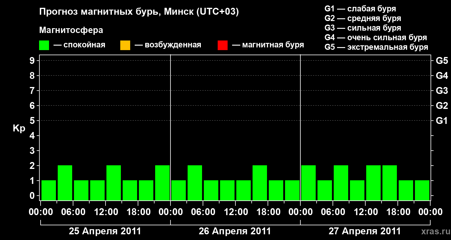 Прогноз магнитных бурь в Минске — 25 апреля 2011 года