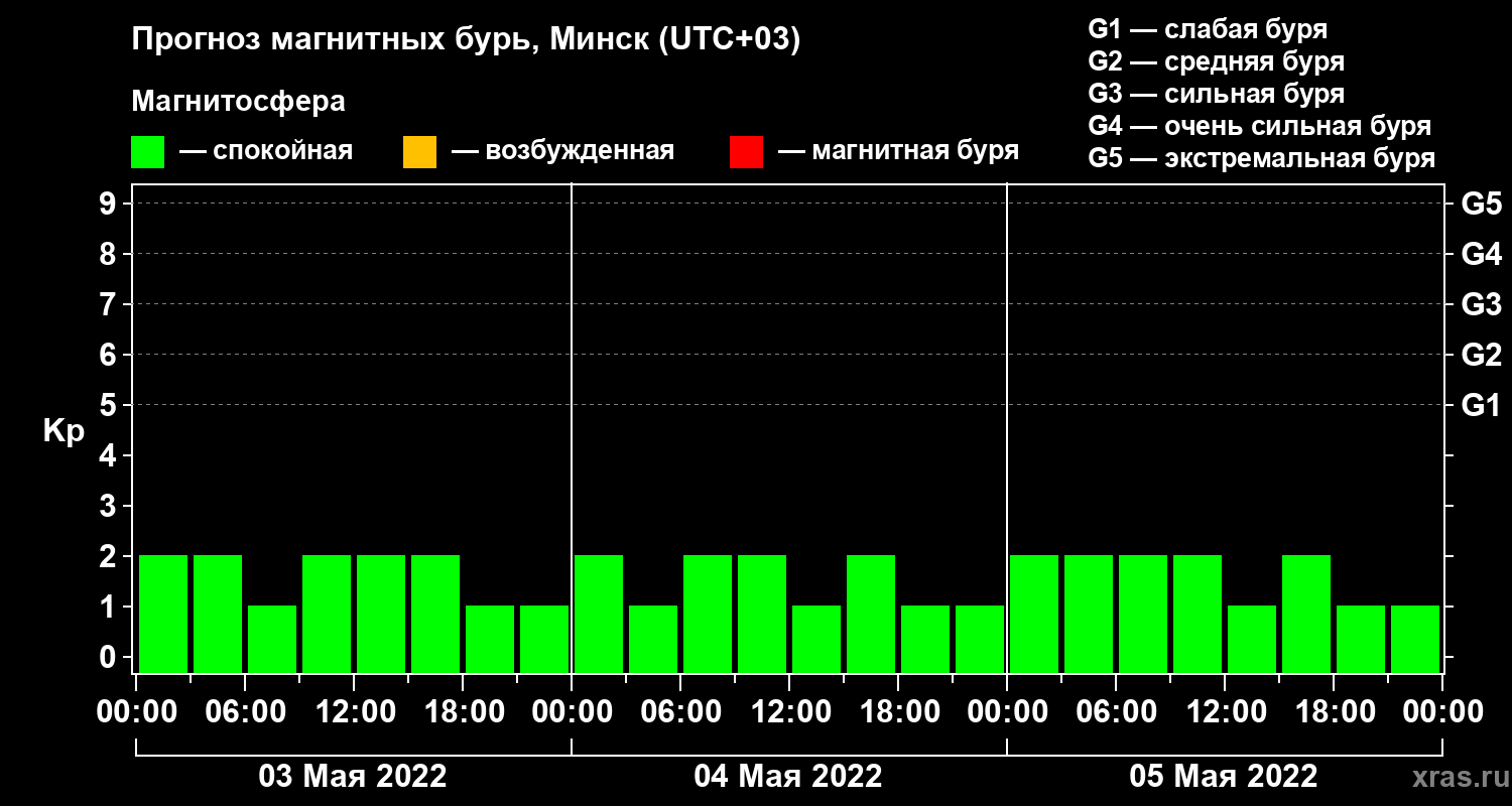 Прогноз магнитных бурь в Минске — 3 мая 2022 года