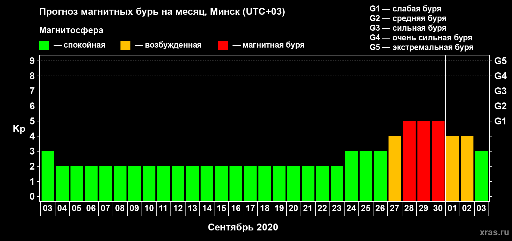 Прогноз магнитных бурь в Минске — 3 сентября 2020 года