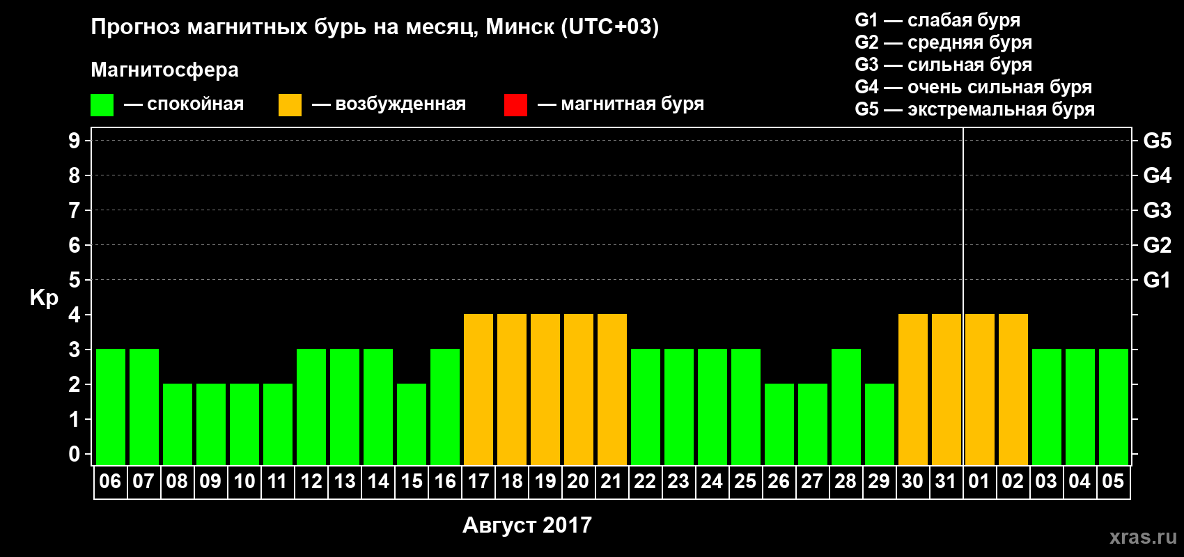 Прогноз магнитных бурь в Минске — 6 августа 2017 года