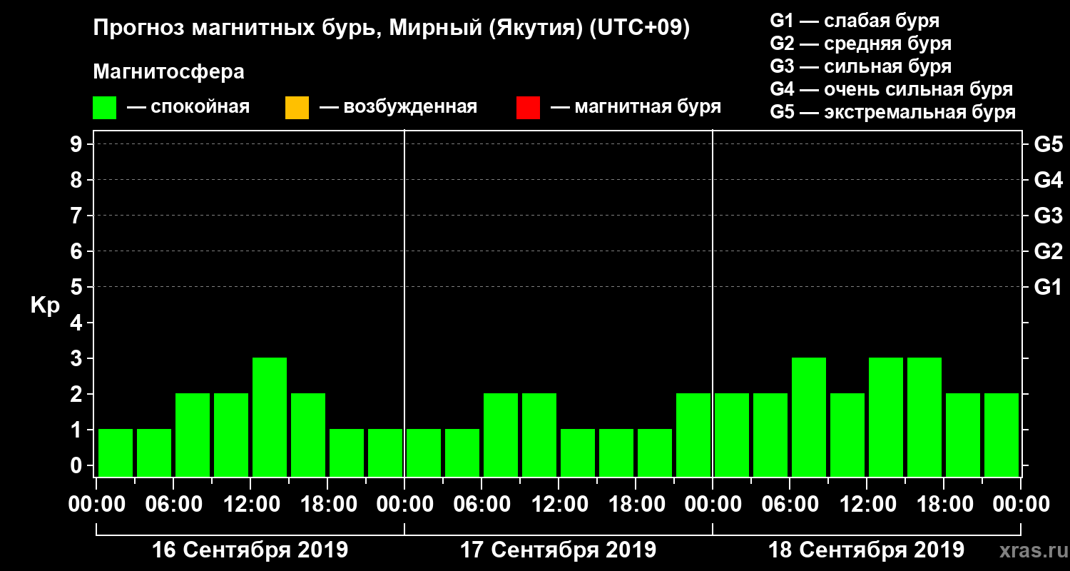 Прогноз магнитных бурь Мирном (Якутия) на 16 сентября 2019 года