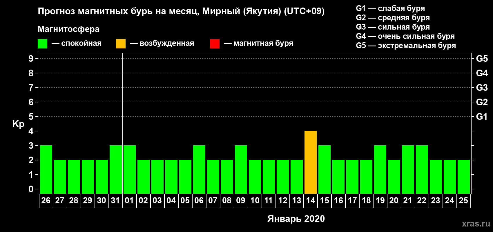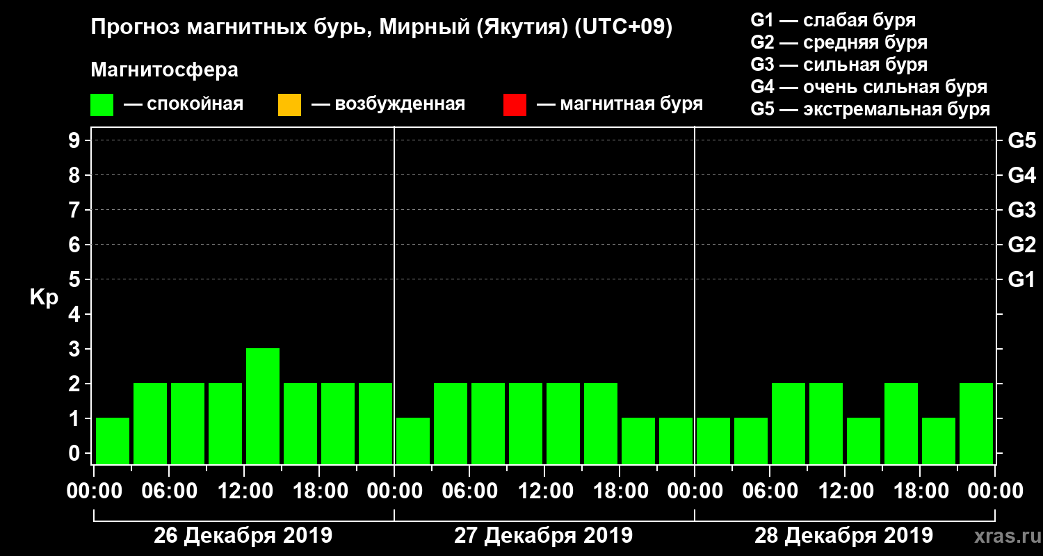 Прогноз магнитных бурь Мирном (Якутия) — 26 декабря 2019 года
