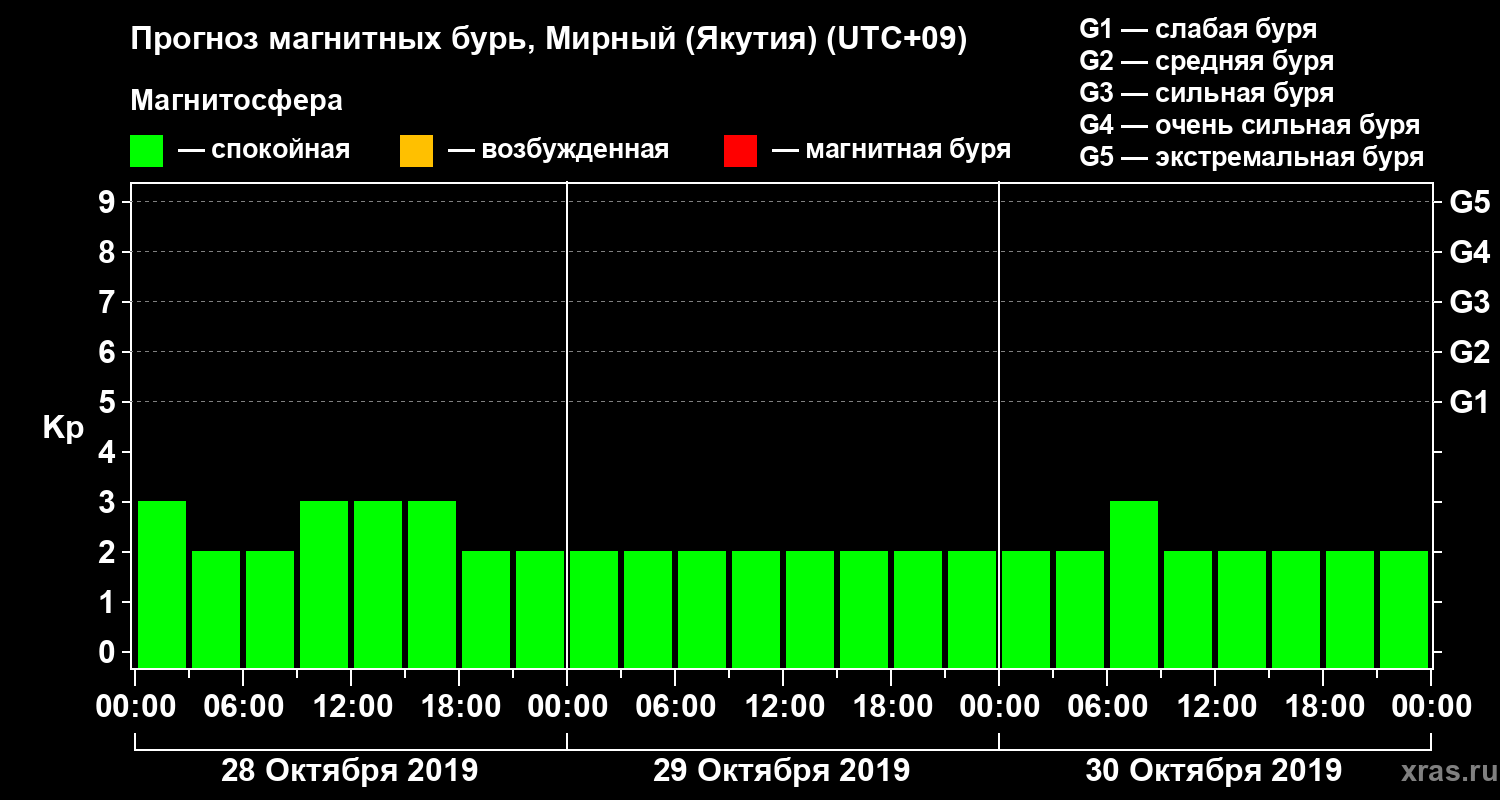 Прогноз магнитных бурь Мирном (Якутия) — 28 октября 2019 года