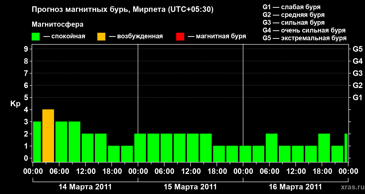 Прогноз магнитных бурь в Мирпете — 14 марта 2011 года
