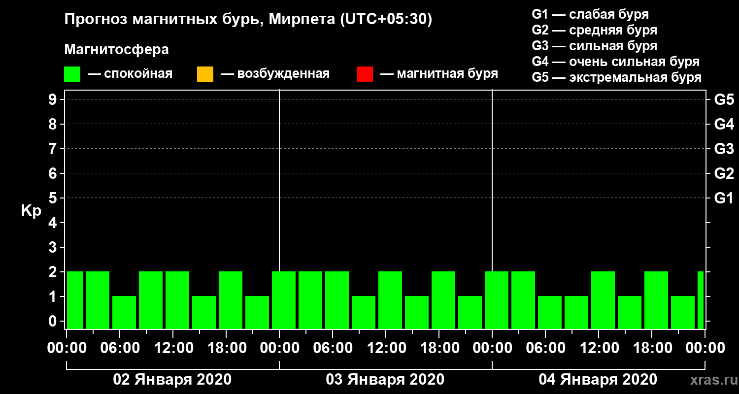 Прогноз магнитных бурь в Мирпете на 2 января 2020 года