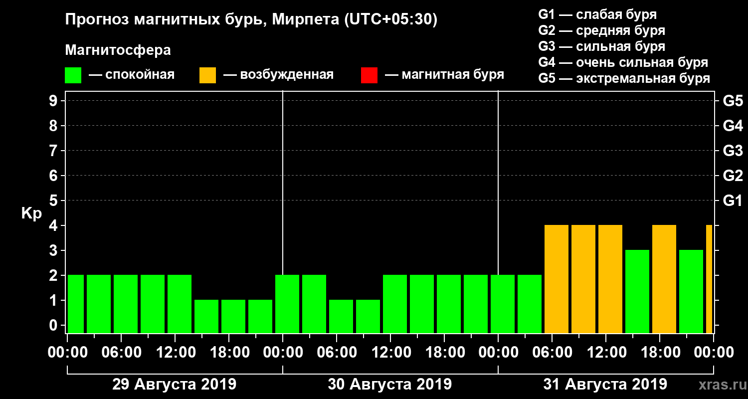 Прогноз магнитных бурь в Мирпете — 29 августа 2019 года