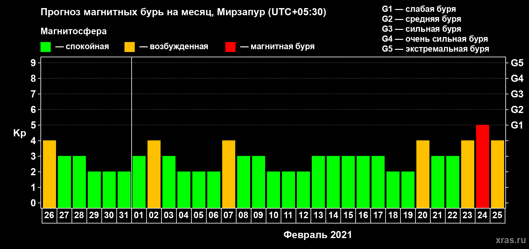 Прогноз магнитных бурь в Мирзапуре — 26 января 2021 года