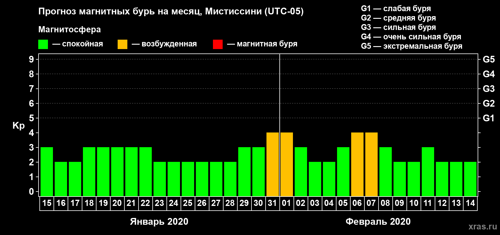 Прогноз магнитных бурь Мистиссини — 15 января 2020 года