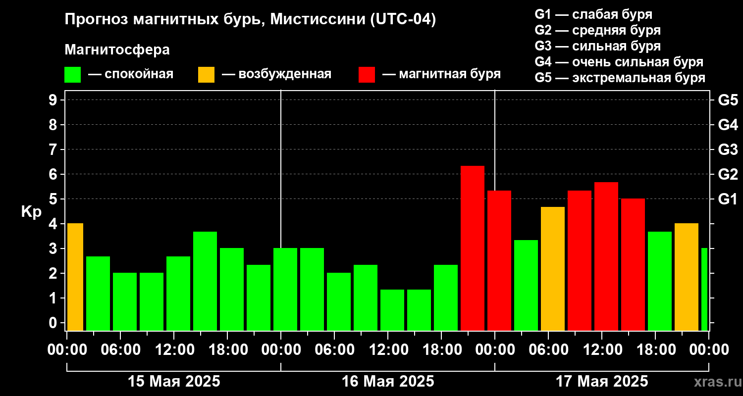 Прогноз магнитных бурь Мистиссини на 15 мая 2025 года