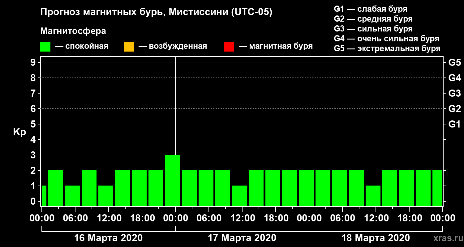 Прогноз магнитных бурь Мистиссини — 16 марта 2020 года
