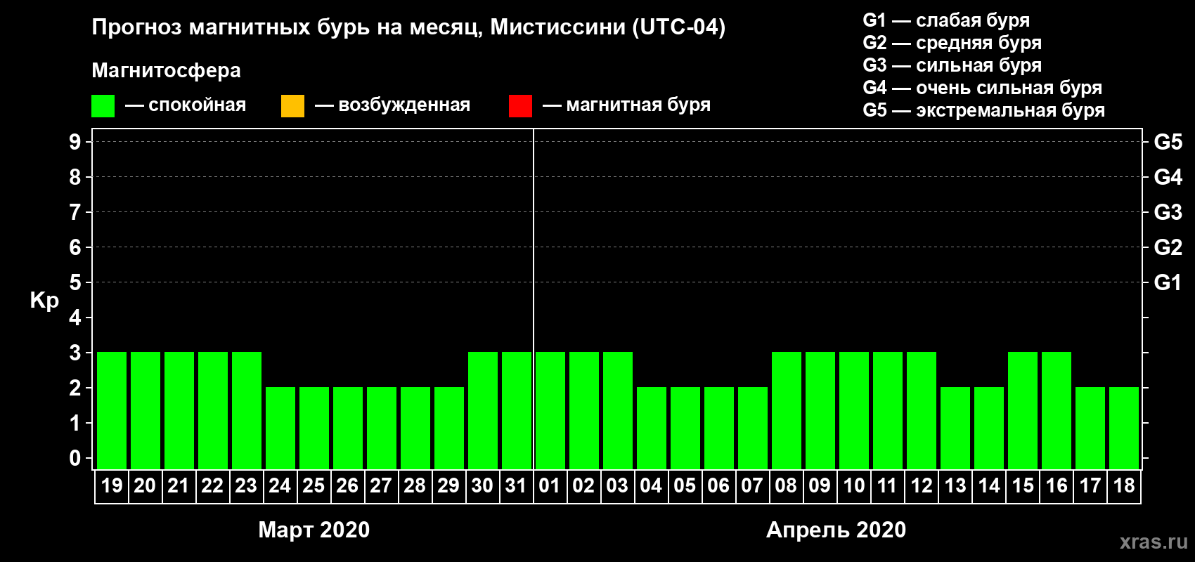 Прогноз магнитных бурь Мистиссини — 19 марта 2020 года