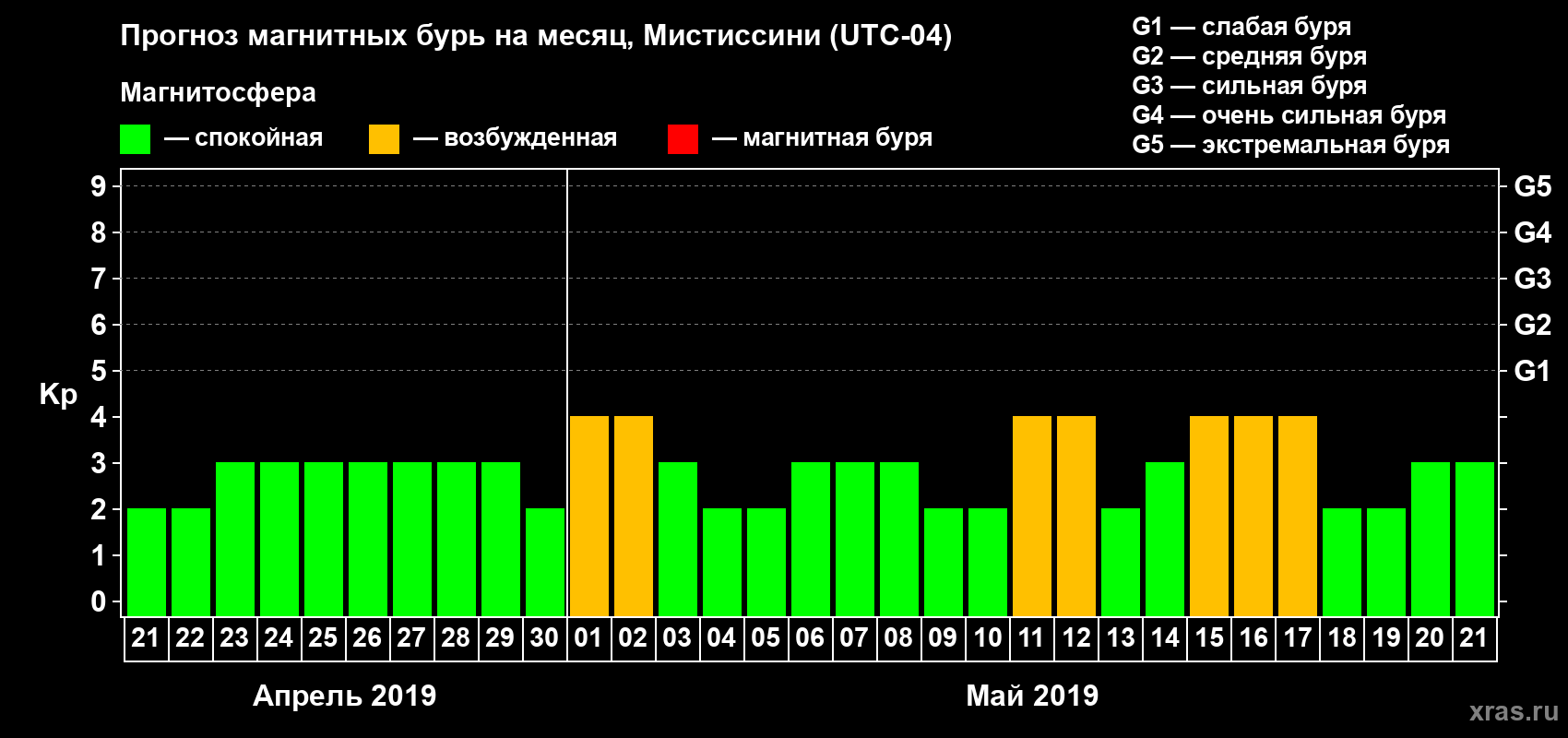 Прогноз магнитных бурь Мистиссини — 21 апреля 2019 года