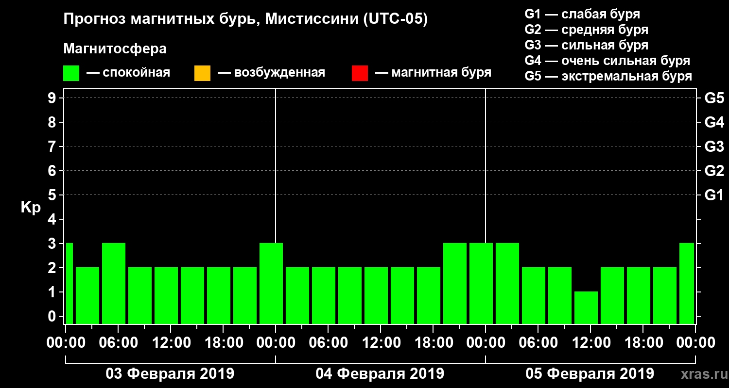 Прогноз магнитных бурь Мистиссини на 3 февраля 2019 года