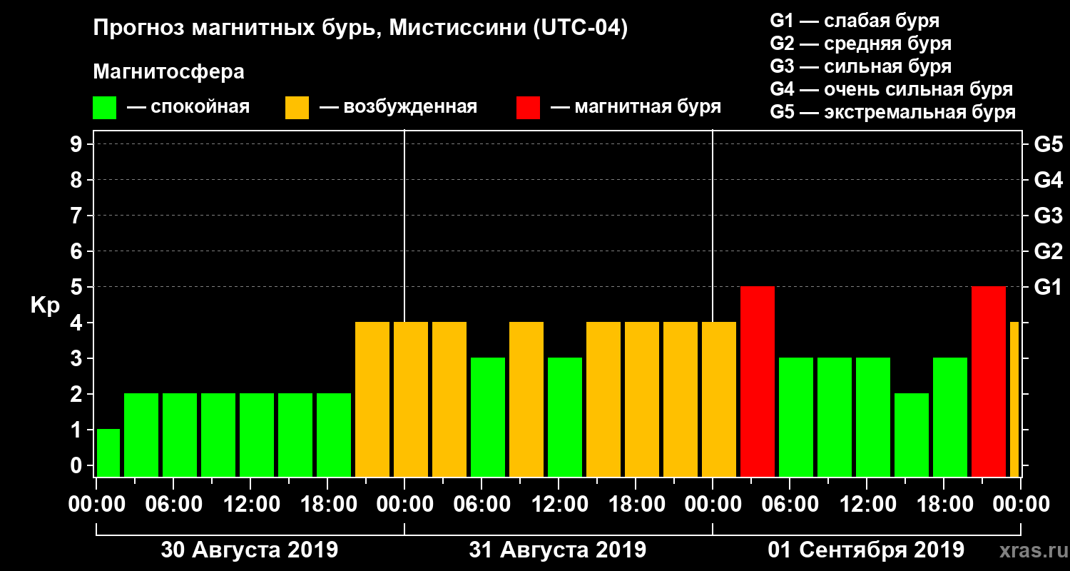 Прогноз магнитных бурь Мистиссини на 30 августа 2019 года