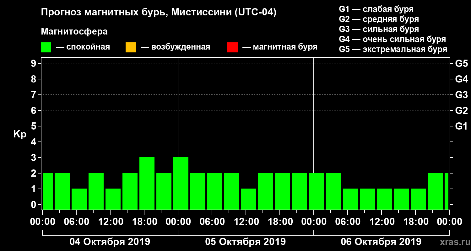 Прогноз магнитных бурь Мистиссини на 4 октября 2019 года