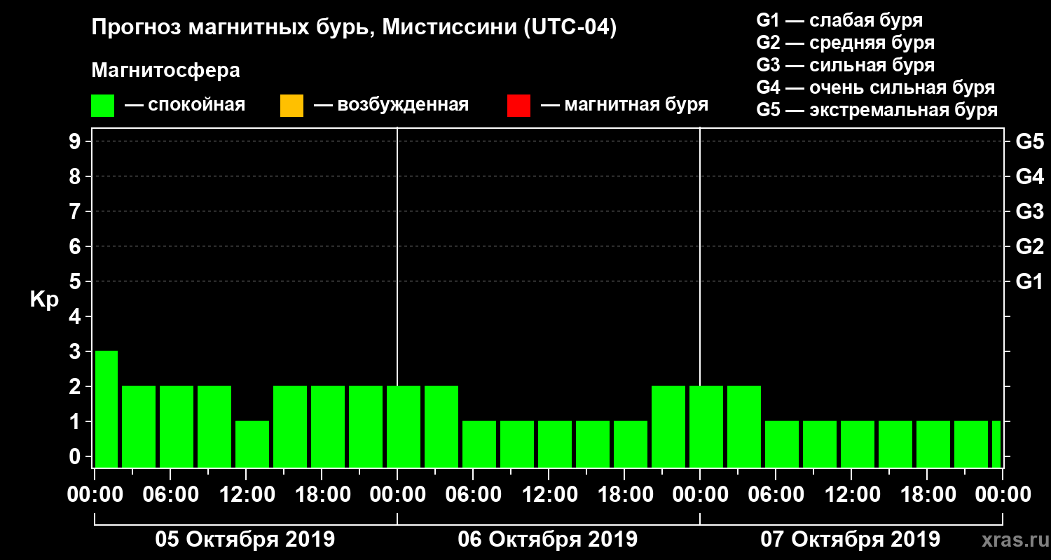 Прогноз магнитных бурь Мистиссини на 5 октября 2019 года