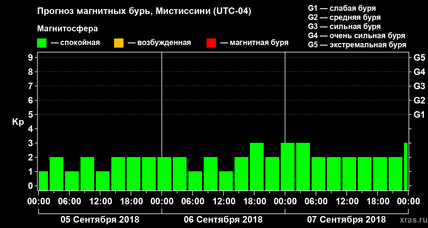 Прогноз магнитных бурь Мистиссини — 5 сентября 2018 года