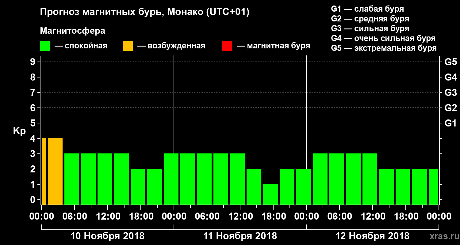 Прогноз магнитных бурь Монако — 10 ноября 2018 года