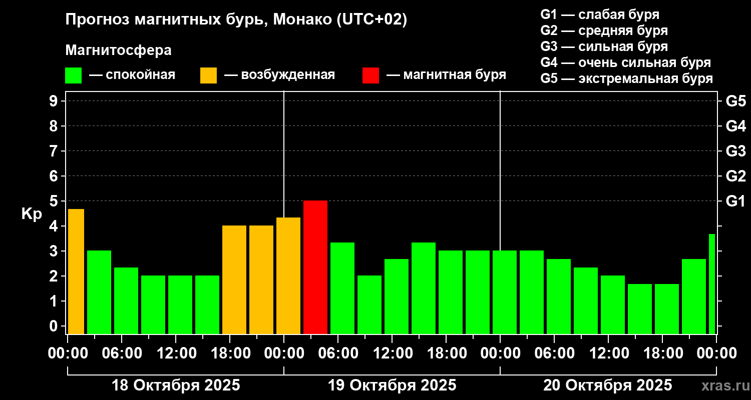 Прогноз магнитных бурь Монако — 18 октября 2025 года