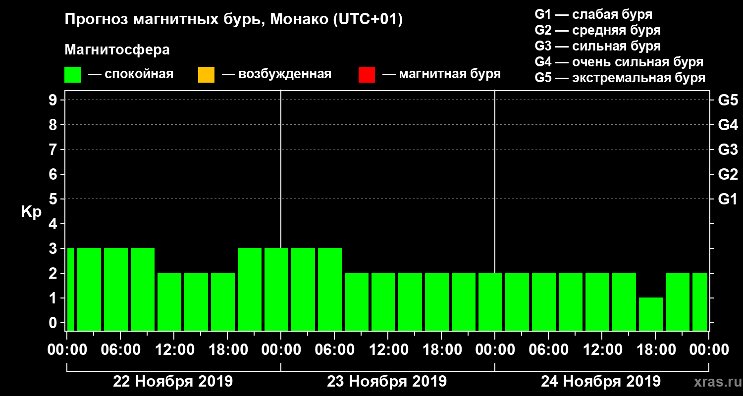 Прогноз магнитных бурь Монако — 22 ноября 2019 года