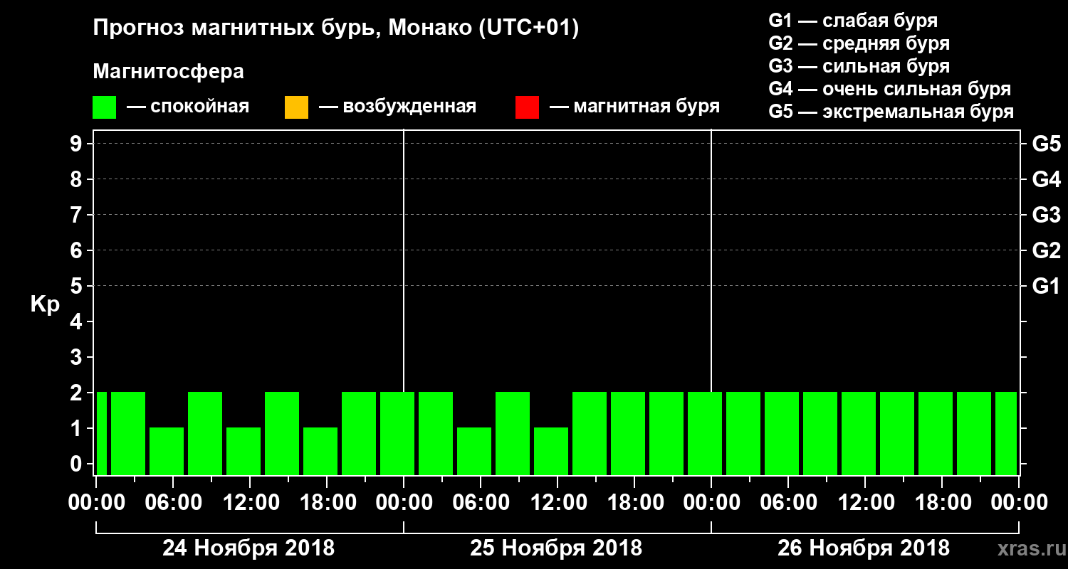 Прогноз магнитных бурь Монако — 24 ноября 2018 года