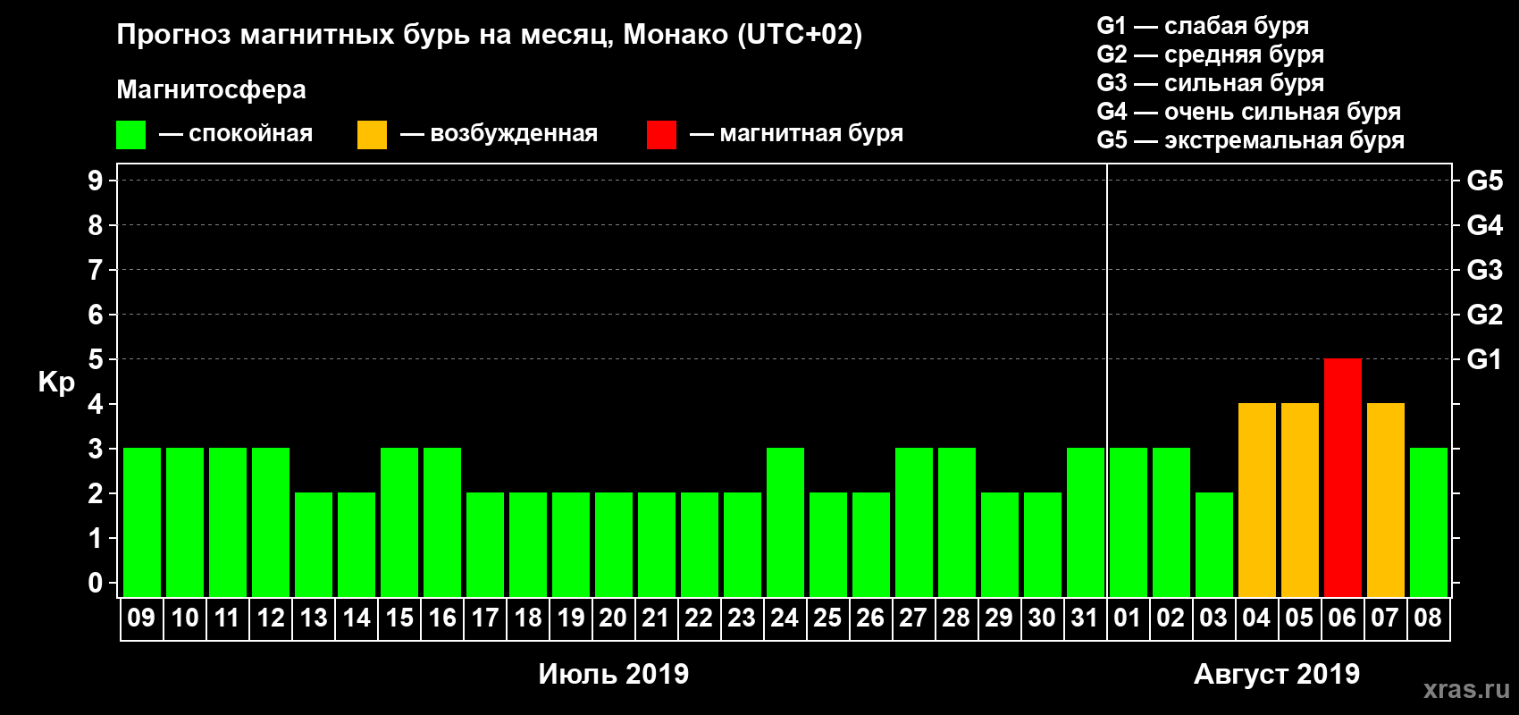 Прогноз магнитных бурь Монако — 9 июля 2019 года