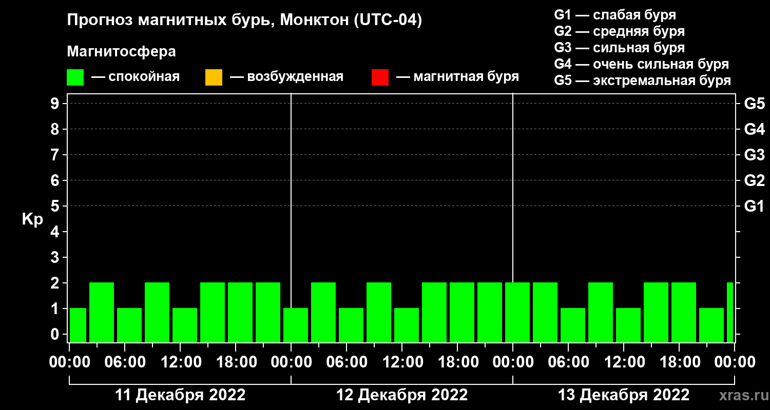 Прогноз магнитных бурь в Монктоне — 11 декабря 2022 года