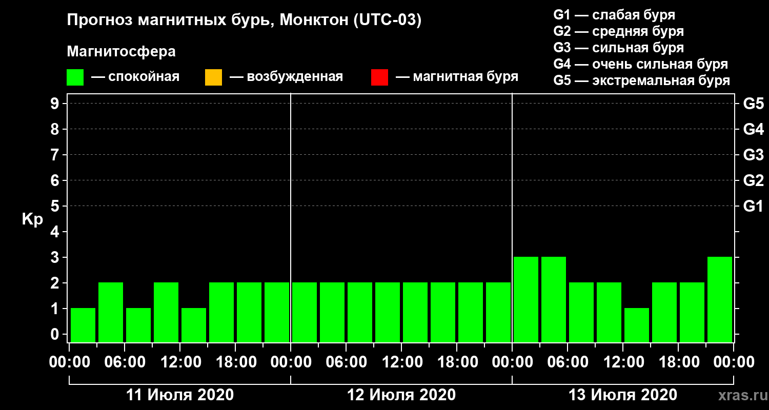 Прогноз магнитных бурь в Монктоне — 11 июля 2020 года