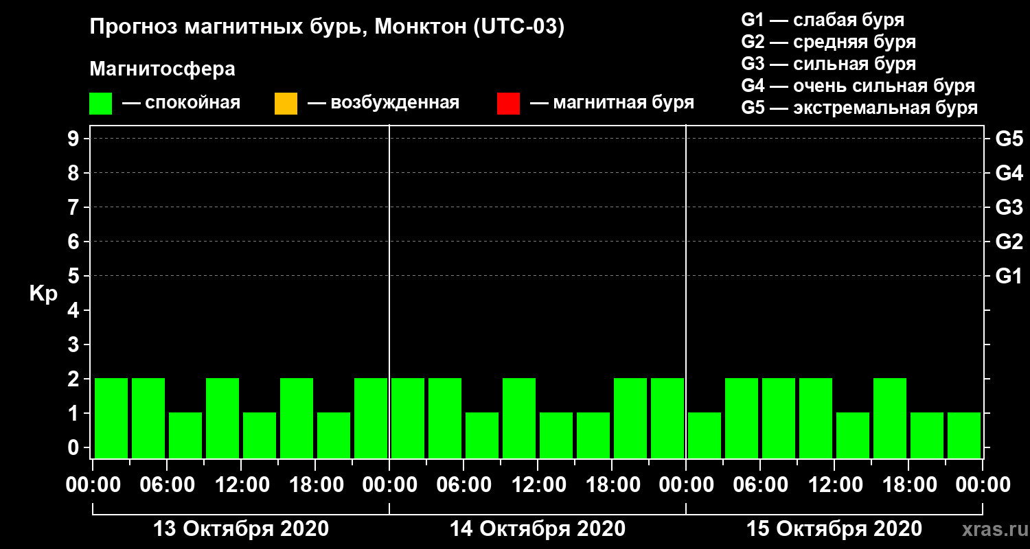 Прогноз магнитных бурь в Монктоне — 13 октября 2020 года