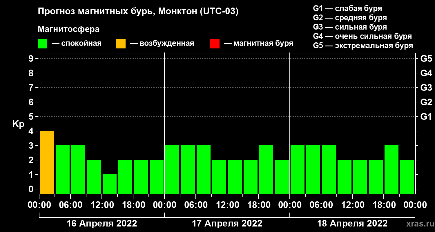 Прогноз магнитных бурь в Монктоне на 16 апреля 2022 года