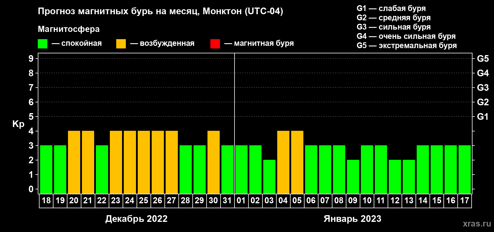 Прогноз магнитных бурь в Монктоне на 18 декабря 2022 года