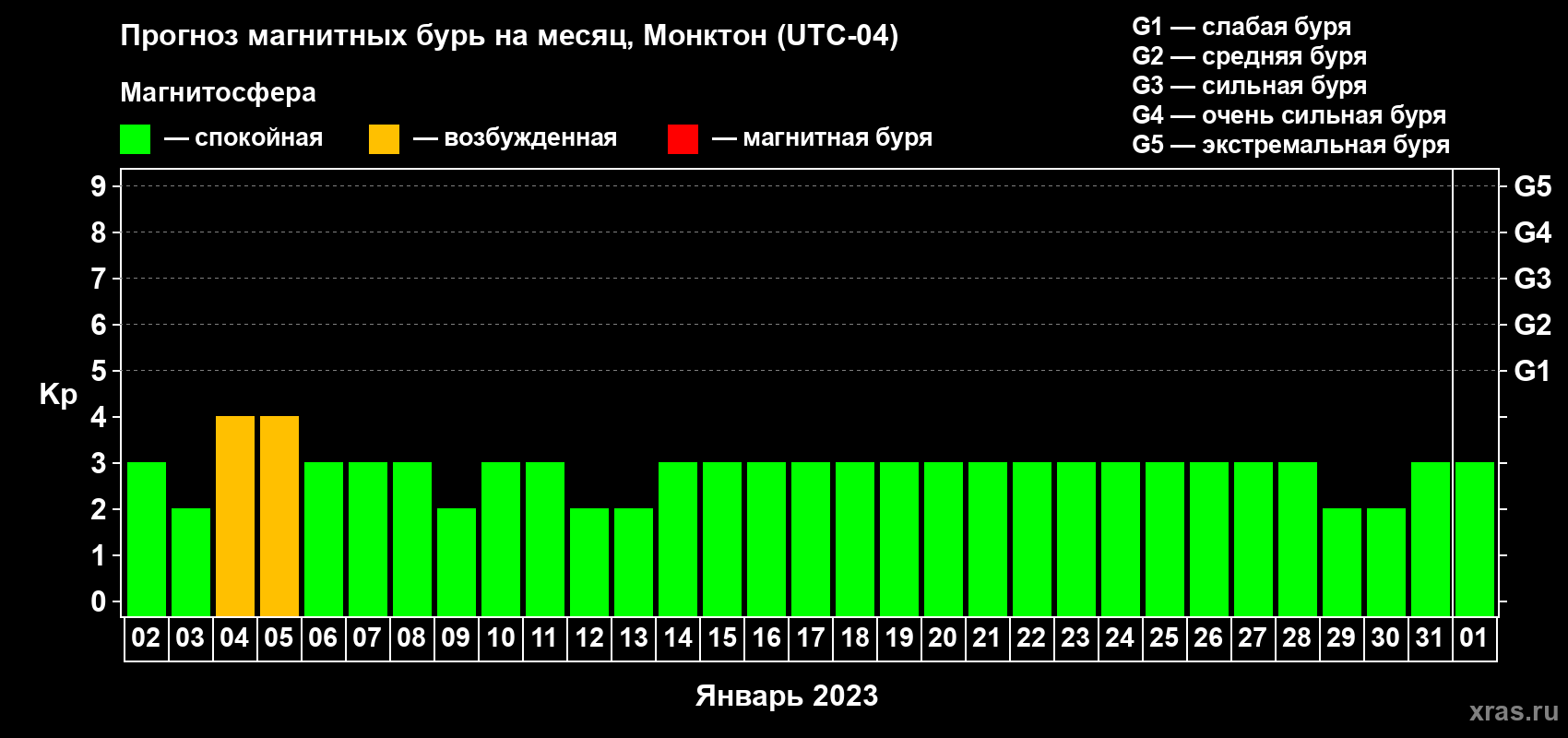 Прогноз магнитных бурь в Монктоне — 2 января 2023 года