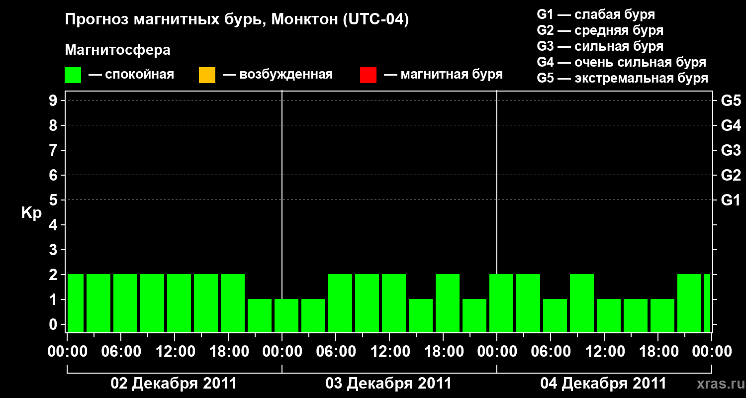 Прогноз магнитных бурь в Монктоне — 2 декабря 2011 года