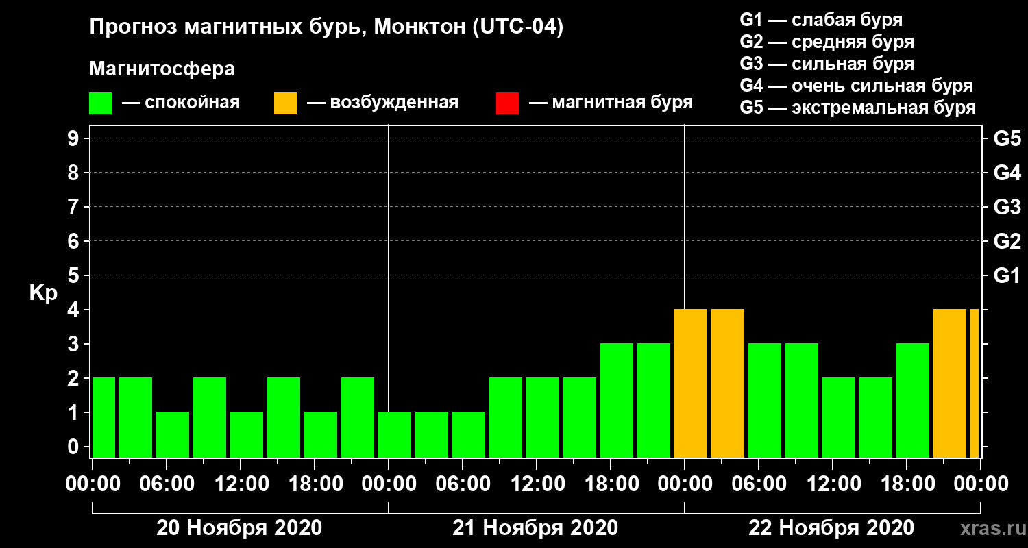 Прогноз магнитных бурь в Монктоне — 20 ноября 2020 года