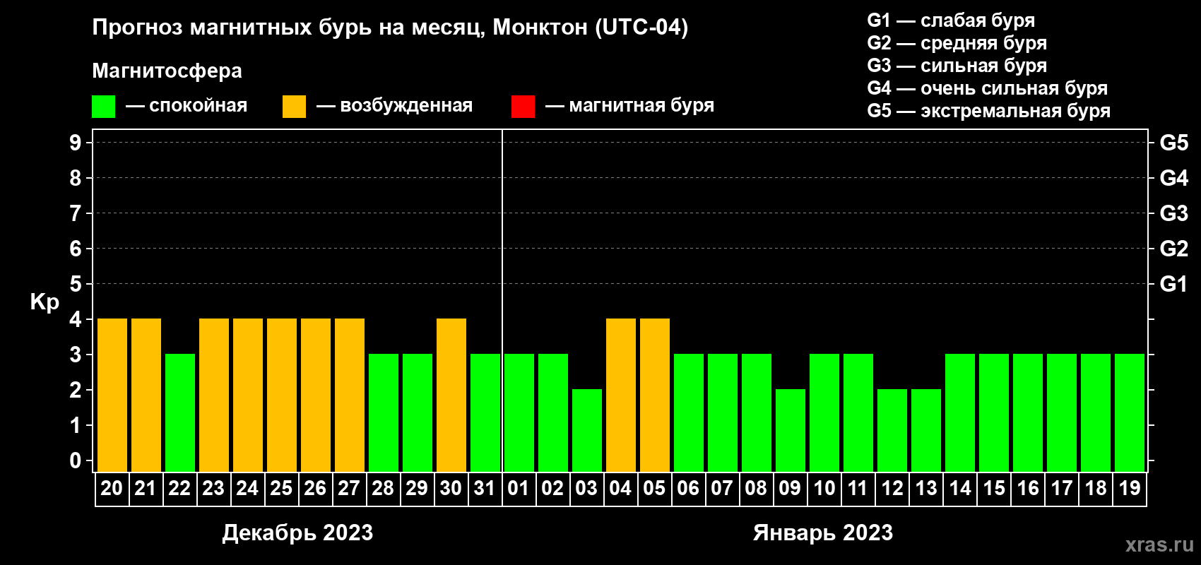 Прогноз магнитных бурь в Монктоне — 20 декабря 2022 года