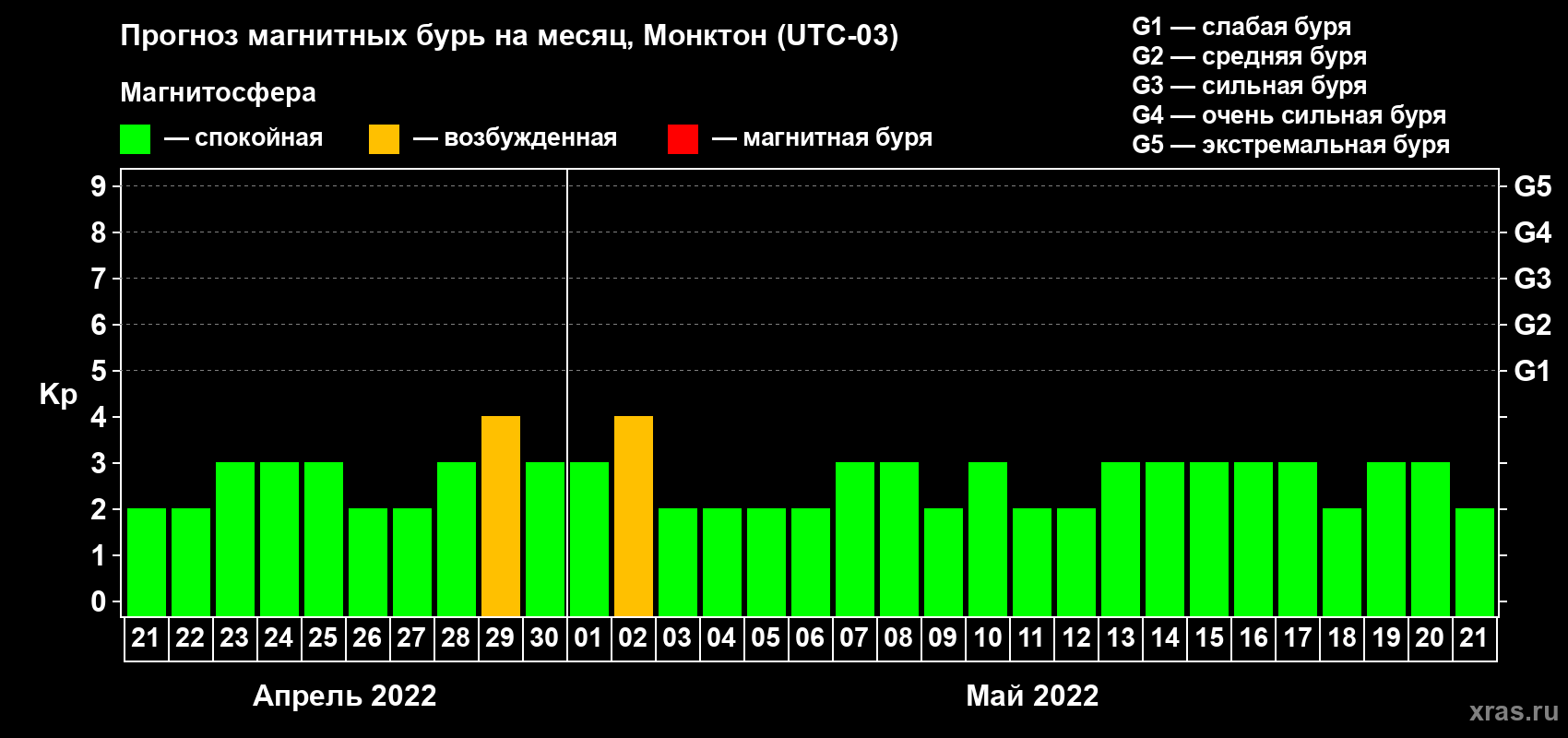 Прогноз магнитных бурь в Монктоне — 21 апреля 2022 года