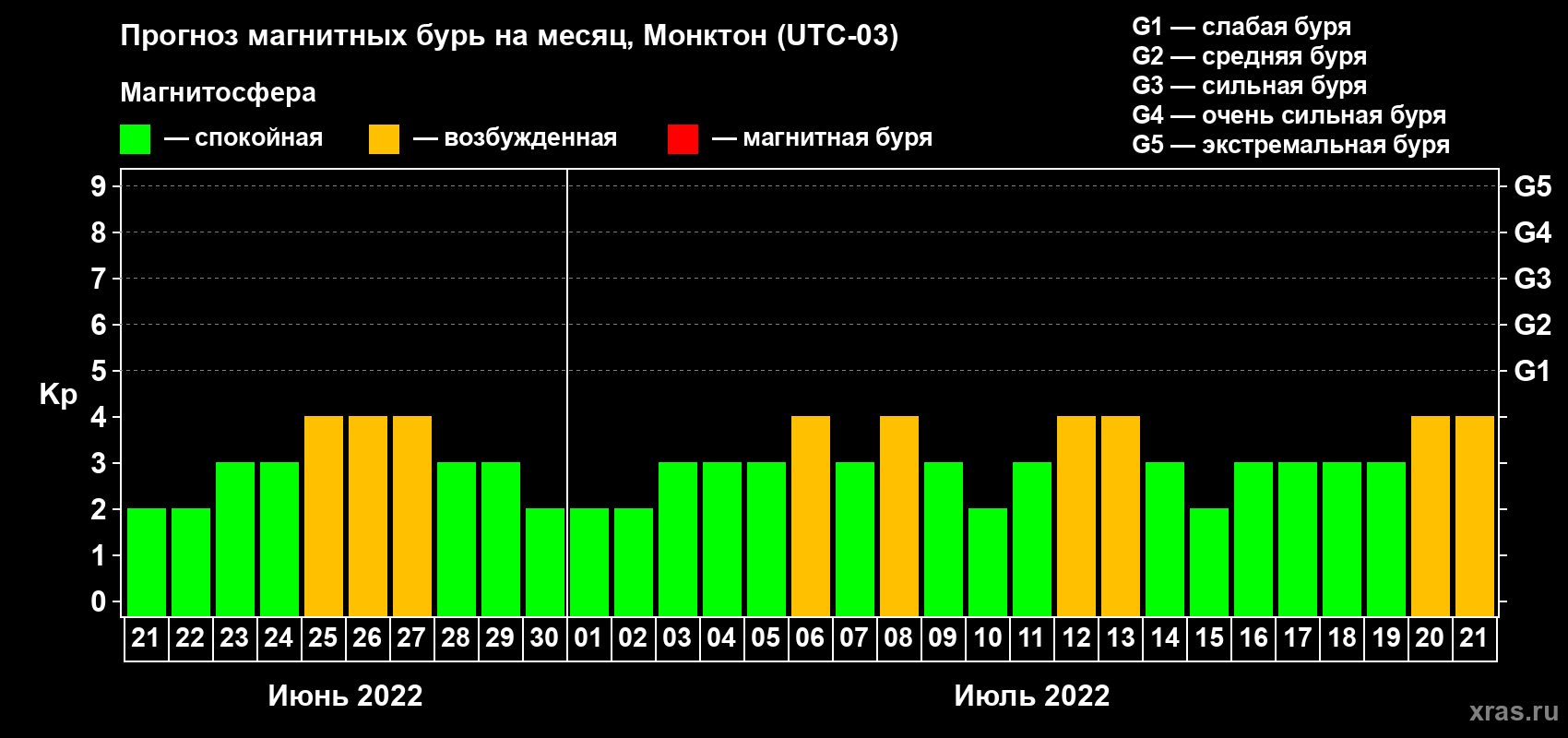 Прогноз магнитных бурь в Монктоне — 21 июня 2022 года