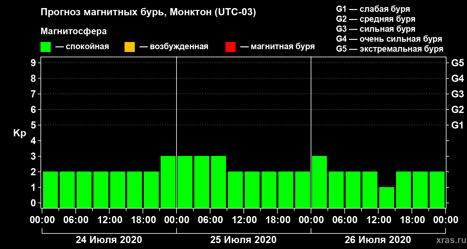 Прогноз магнитных бурь в Монктоне — 24 июля 2020 года