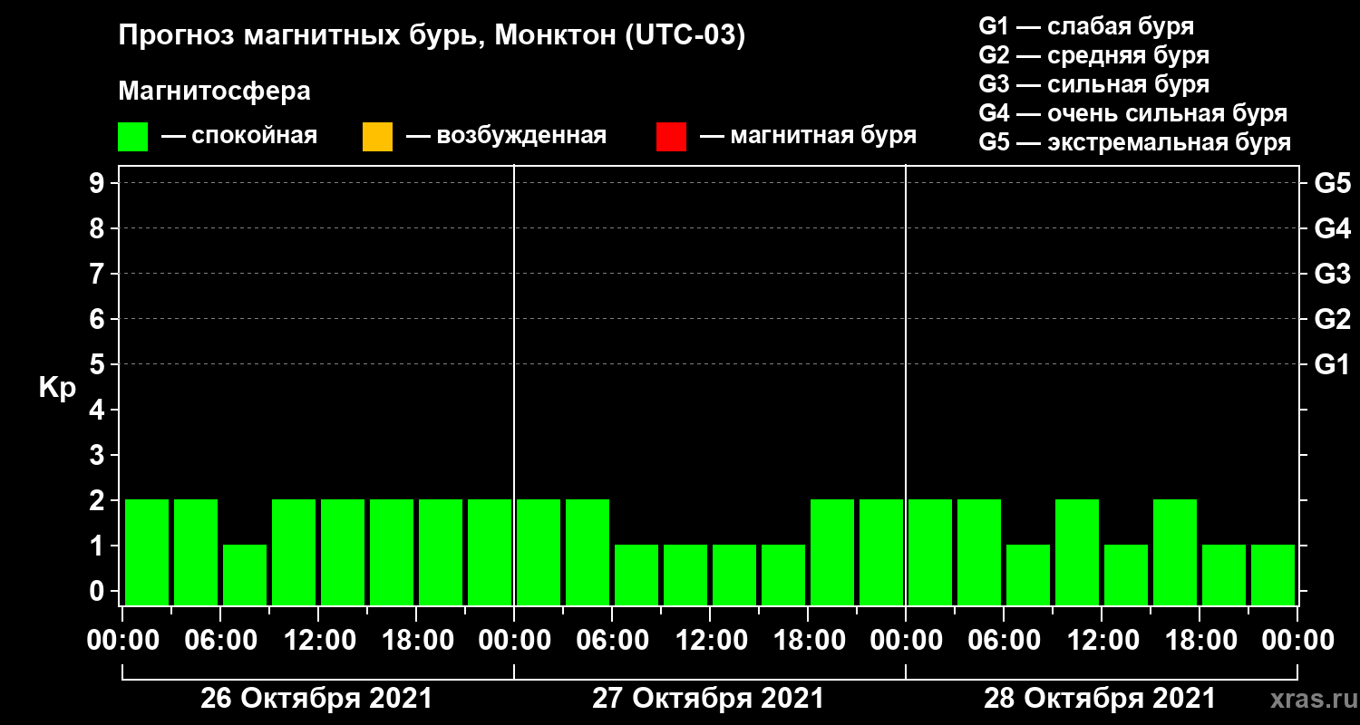 Прогноз магнитных бурь в Монктоне — 26 октября 2021 года