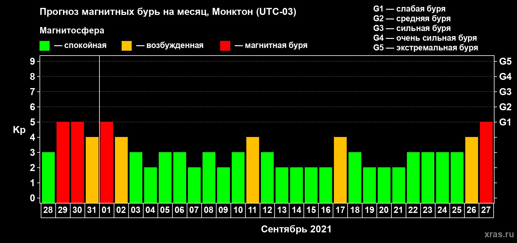 Прогноз магнитных бурь в Монктоне — 28 августа 2021 года