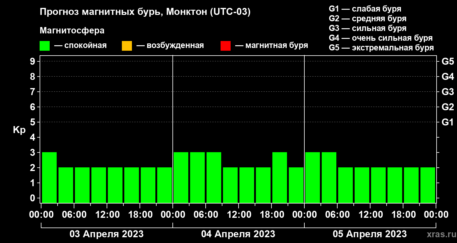 Прогноз магнитных бурь в Монктоне на 3 апреля 2023 года