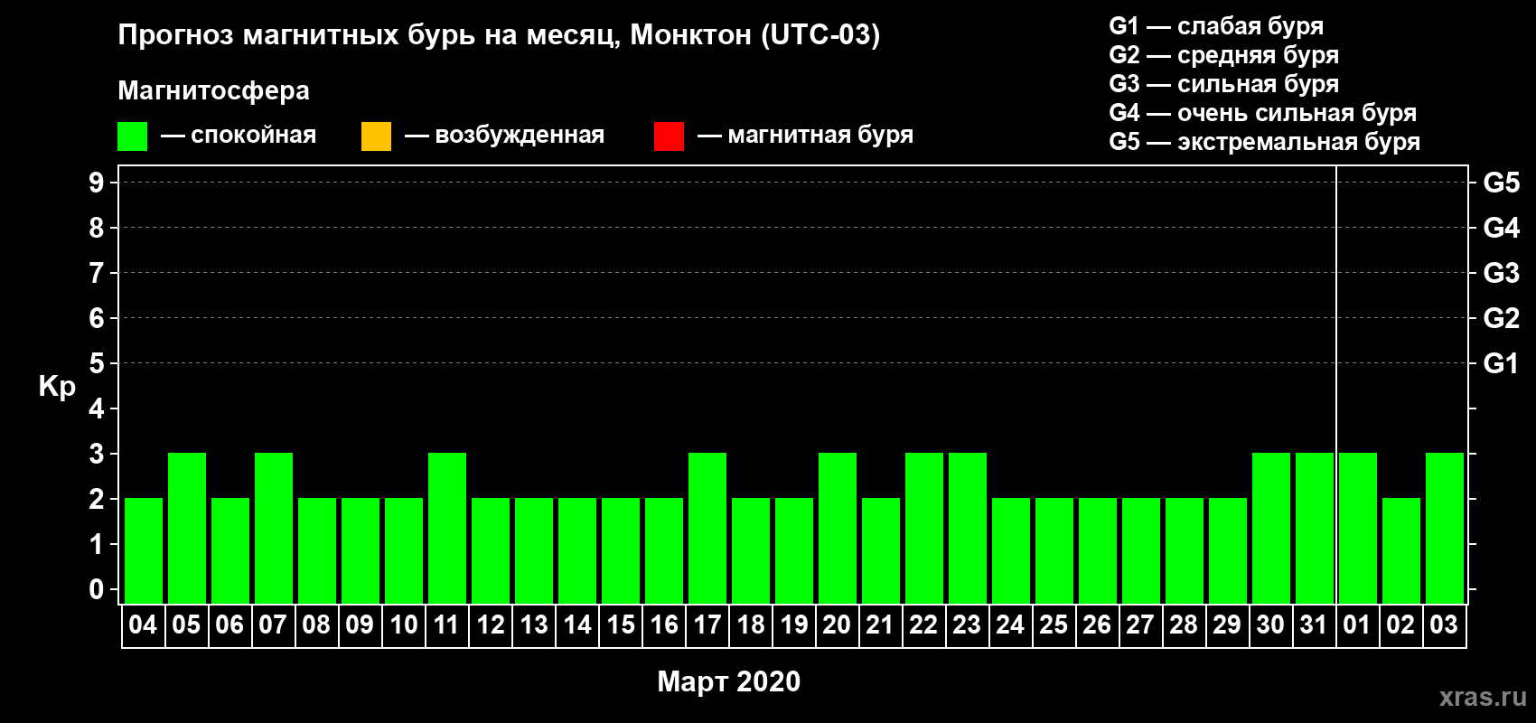 Прогноз магнитных бурь в Монктоне — 4 марта 2020 года